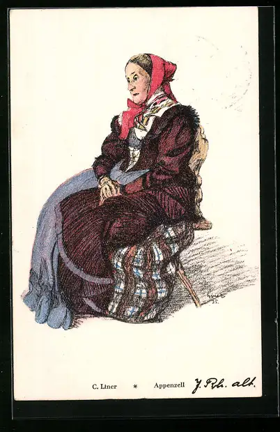 AK Ältere Frau in Appenzeller Tracht mit rotem Kopftuch
