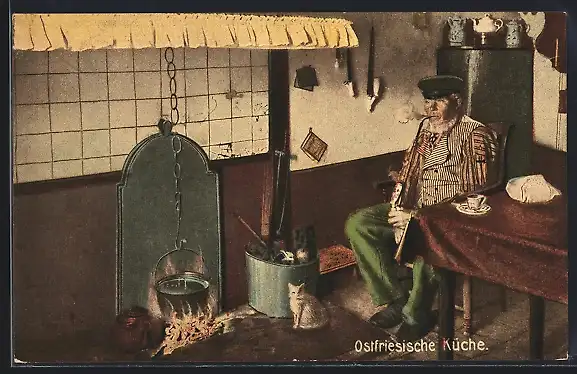 AK Älterer Herr sitzt in ostfriesischer Küche