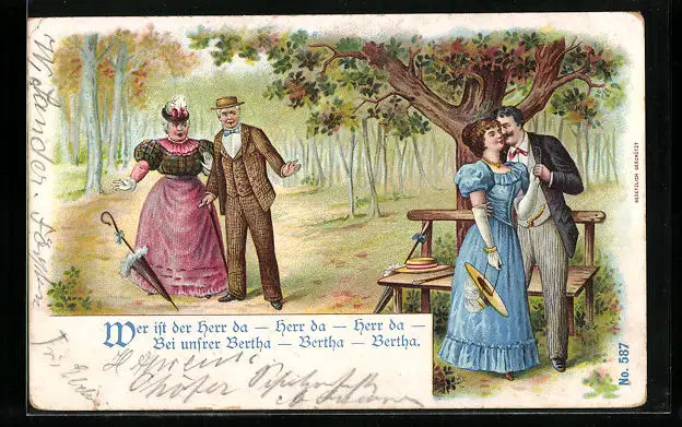 AK Älteres Ehepaar entdeckt Liebespaar im Wald