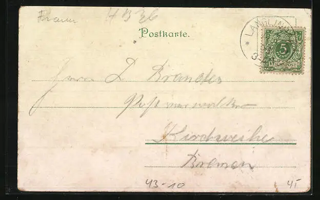 alte Ansichtskarte, gelaufen 1899, Eckknick li. oben, minimaler Einriss li. unten, guter Zustand