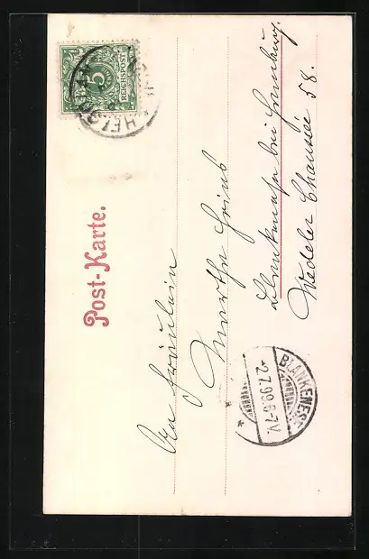 alte Ansichtskarte, gelaufen 1899, guter Zustand