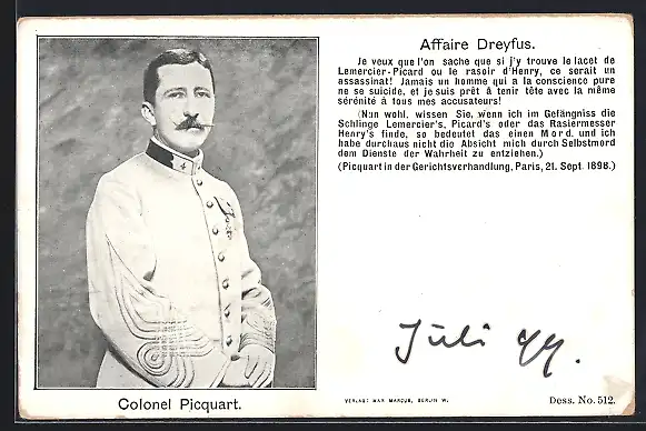 AK Affaire Dreyfus, Porträt des Colonel Picquart