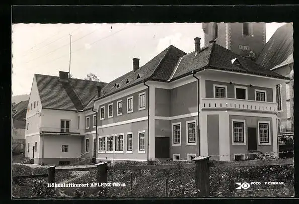 AK Aflenz, Grosses Gebäude vor dem Kirchturm
