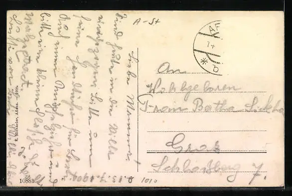 alte Ansichtskarte, gelaufen, Briefmarke entfernt, guter Zustand