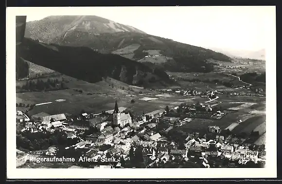 AK Aflenz /Steiermark, Fliegeraufnahme der Ortschaft mit Berg
