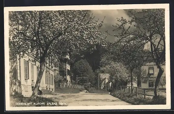 AK Aflenz, Strassenpartie mit blühenden Bäumen