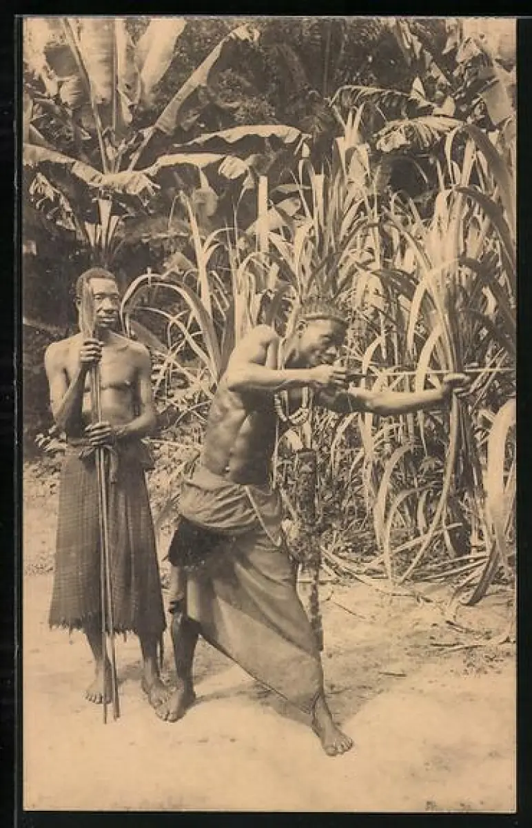 AK Afrikaner mit Speeren und Pfeil und Bogen auf der Jagd