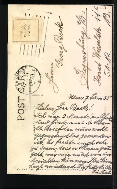 alte Ansichtskarte, gelaufen 1935, Briefmarke entfernt, guter Zustand