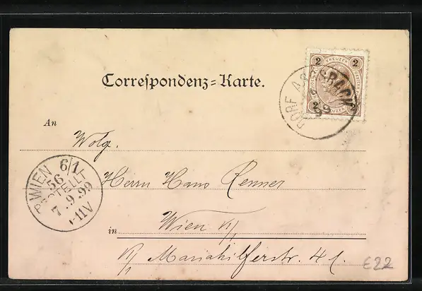 alte Ansichtskarte, gelaufen 1899, Stempelspur, guter Zustand