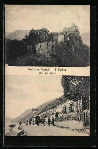 AK Aggstein i. Wachau, Gasthaus, Burg