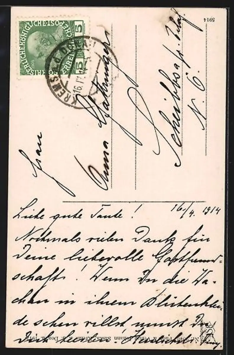 alte Ansichtskarte, gelaufen 1914, Stempelspur, guter Zustand