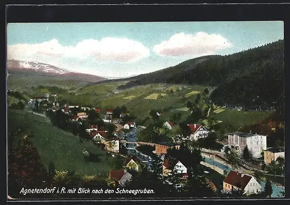 AK Agnetendorf i. R., Ortsansicht mit Schneegruben