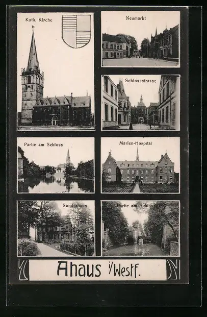AK Ahaus i. Westf., Katholische Kirche, Neumarkt, Partie am Schloss
