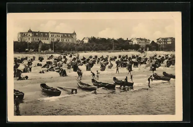 AK Ahlbeck, Am Strand mit Besuchern und Booten