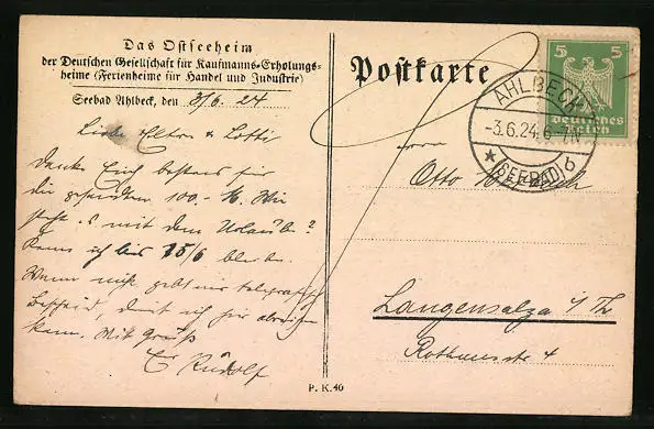 alte Ansichtskarte, gelaufen 1924, guter Zustand