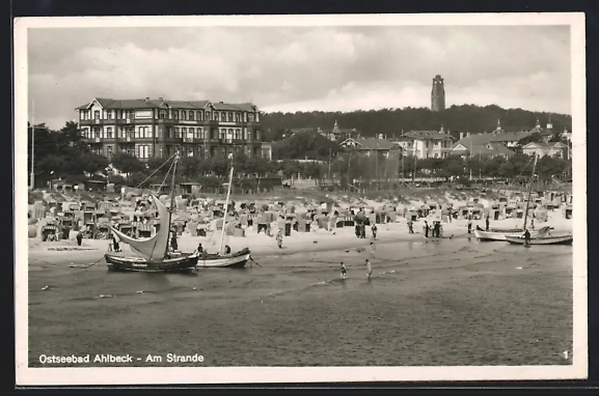 AK Ahlbeck / Ostseebad, Am Strande, Boote, Strandkörbe