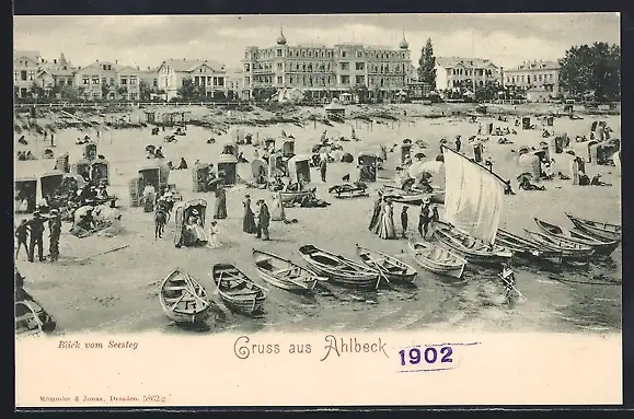 AK Ahlbeck / Ostseebad, Blick vom Seesteg mit Booten