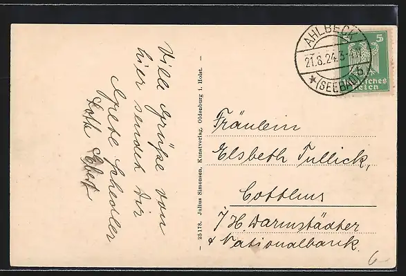 alte Ansichtskarte, gelaufen 1924, Stempelspur, guter Zustand