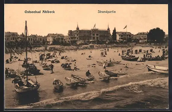 AK Ahlbeck / Ostseebad, Strandpartie mit Booten