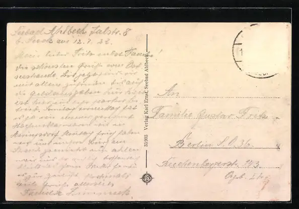 alte Ansichtskarte, gelaufen, Briefmarke entfernt, guter Zustand