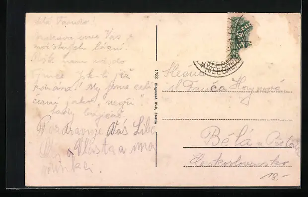 alte Ansichtskarte, gelaufen, Briefmarke tw. entfernt, rückseitig Oberflächenschaden, guter Zustand