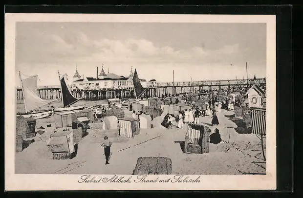AK Ahlbeck / Usedom, Strand mit Seebrücke