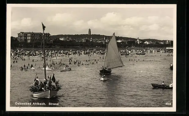 AK Ahlbeck / Usedom, Strandpartie vom Wasser aus gesehen