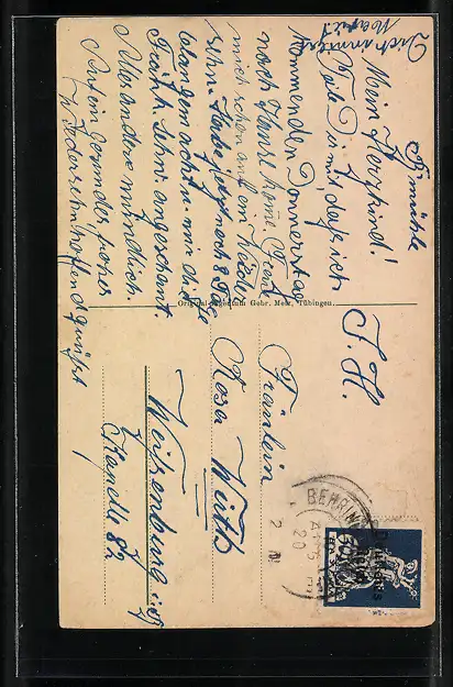 alte Ansichtskarte, gelaufen 1920, Eckknick oben re., guter Zustand