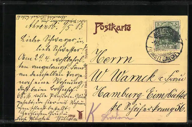 alte Ansichtskarte, gelaufen 1913, Stempelspur, guter Zustand