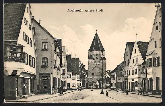 AK Aichach, Strassenpartie in der unteren Stadt