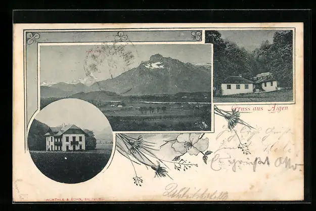 AK Aigen, Gebäudeansichten, Blick zum Watzmann