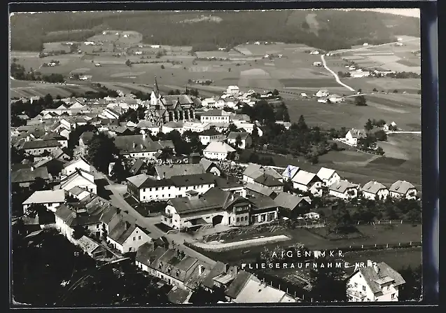 AK Aigen /Mühlkreis, Fliegeraufnahme mit Kirche und Strassenpartie