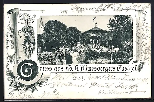 AK Aigen /O.-Oe., Gasthof H. A. Almesberger mit Gästen