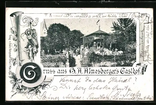 AK Aigen /O.-Oe., Gasthof H. A. Almesberger mit Gartenbereich