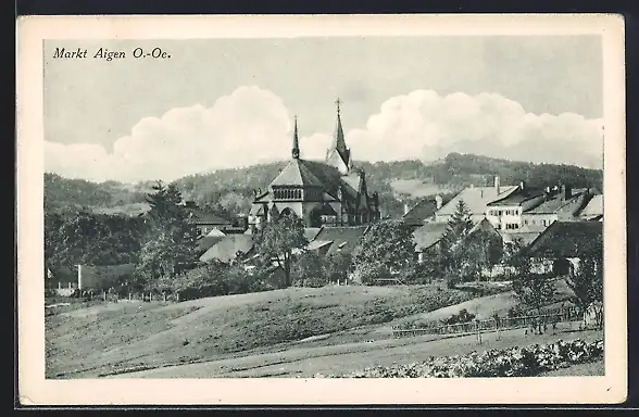 AK Aigen /O.-Oe., Ortsansicht mit Kirche