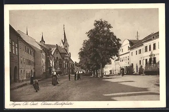 AK Aigen /O.-Oe., Passanten auf dem Oberen Marktplatz