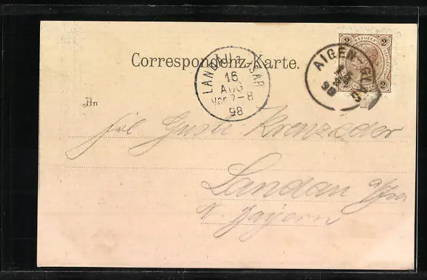 alte Ansichtskarte, gelaufen 1898, guter Zustand