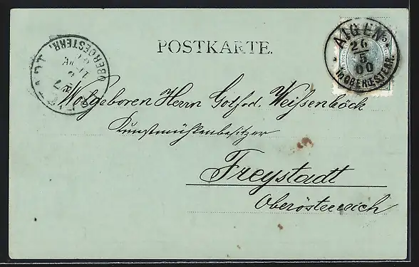 alte Ansichtskarte, gelaufen 1900, Eckknicke li. oben u. re. unten, guter Zustand