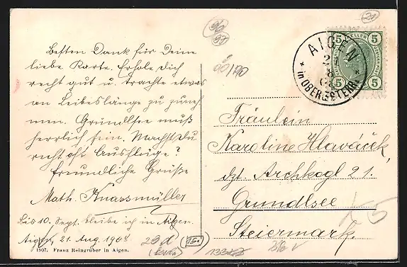 alte Ansichtskarte, gelaufen 1908, guter Zustand