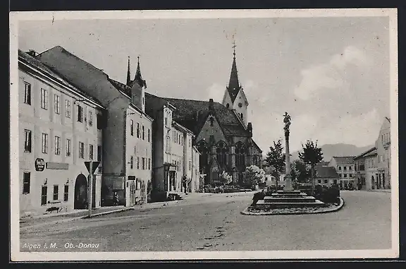 AK Aigen im Mühlkreis, Strassenpartie mit Denkmal