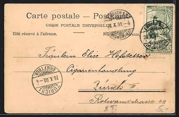 alte Ansichtskarte, gelaufen 1900, guter Zustand