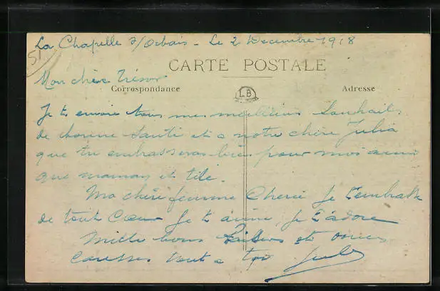 ungelaufen, Rückseite beschrieben 1918, guter Zustand