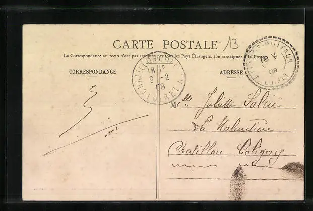 alte Ansichtskarte, gelaufen 1908, guter Zustand