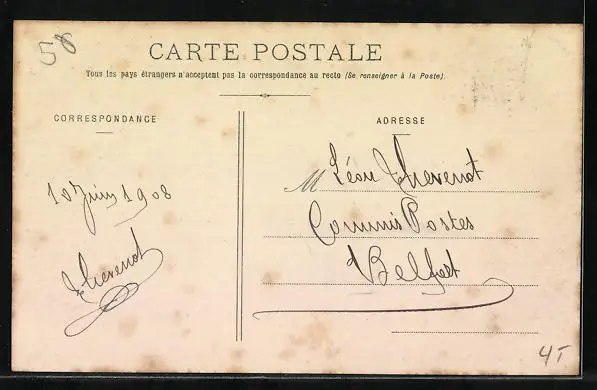 gelaufen 1908, leicht fleckig, guter Zustand