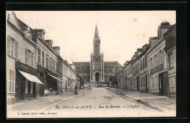 AK Ailly-sur-Noye, Rue St-Martin, L`Eglise