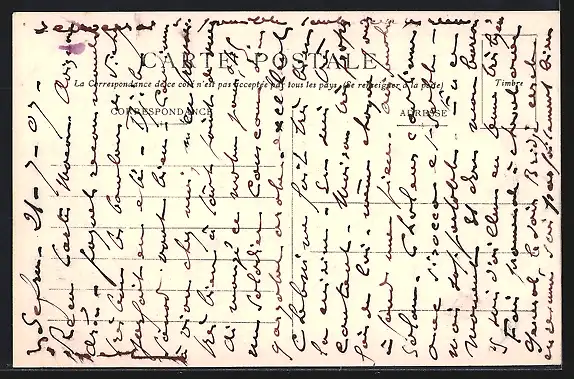 Personenbezogene Daten auf der Rückseite der Karte wurden durch blauen Textmarker unkenntlich gemacht. Die blauen Stellen sind auf die Vorderseite durchgeweicht und wirken sich negativ auf das Postkartenfoto aus