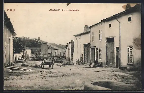 AK Aingeray, Grande-Rue animée avec charrette et habitants