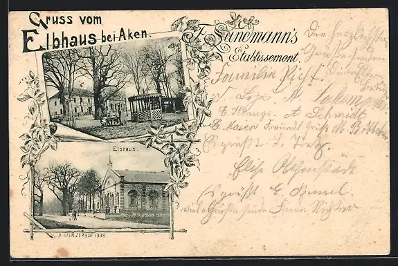 AK Aken, Gastwirtschaft Elbhaus, Bes. F. Sunemann`s, Aussenansichten