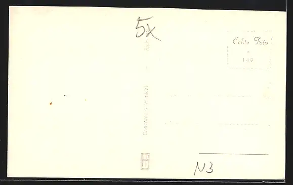 Personenbezogene Daten auf der Rückseite der Karte wurden durch blauen Textmarker unkenntlich gemacht. Die blauen Stellen sind auf die Vorderseite durchgeweicht und wirken sich negativ auf das Postkartenfoto aus