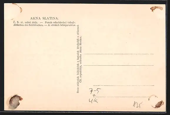 Personenbezogene Daten auf der Rückseite der Karte wurden durch blauen Textmarker unkenntlich gemacht. Die blauen Stellen sind auf die Vorderseite durchgeweicht und wirken sich negativ auf das Postkartenfoto aus